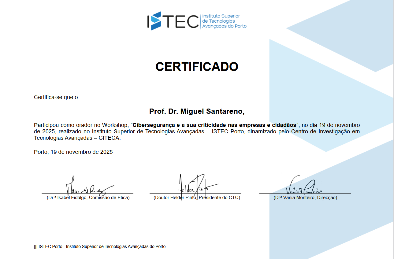 Istec Porto - Workshop - Cibersegurança e a sua criticidade nas empresas e cidadãos